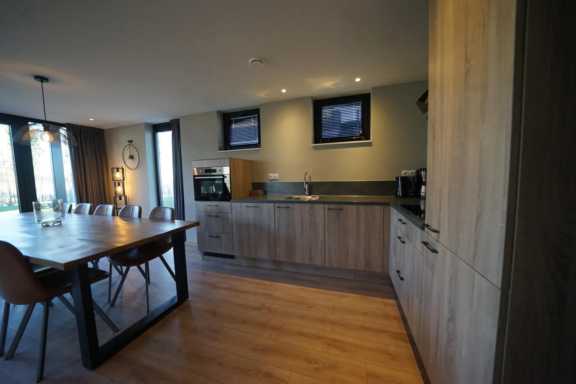 Op de begane grond is verder de riante badkamer met inloopdouche, tweebaks wastafel, vrijhangend toilet en een fontein een blikvanger, maar ook de royale woonkamer met de fraaie lichtinval en toegang tot het terras is een fraai visitekaartje. Net als de entree, met wederom die fraaie lichtinval, die in verbinding staat met woonkamer, badkamer, toilet en bovenverdieping. Verder is de keuken luxueus aangekleed met alle keukenaccessoires die in een keuken verwacht mogen worden.