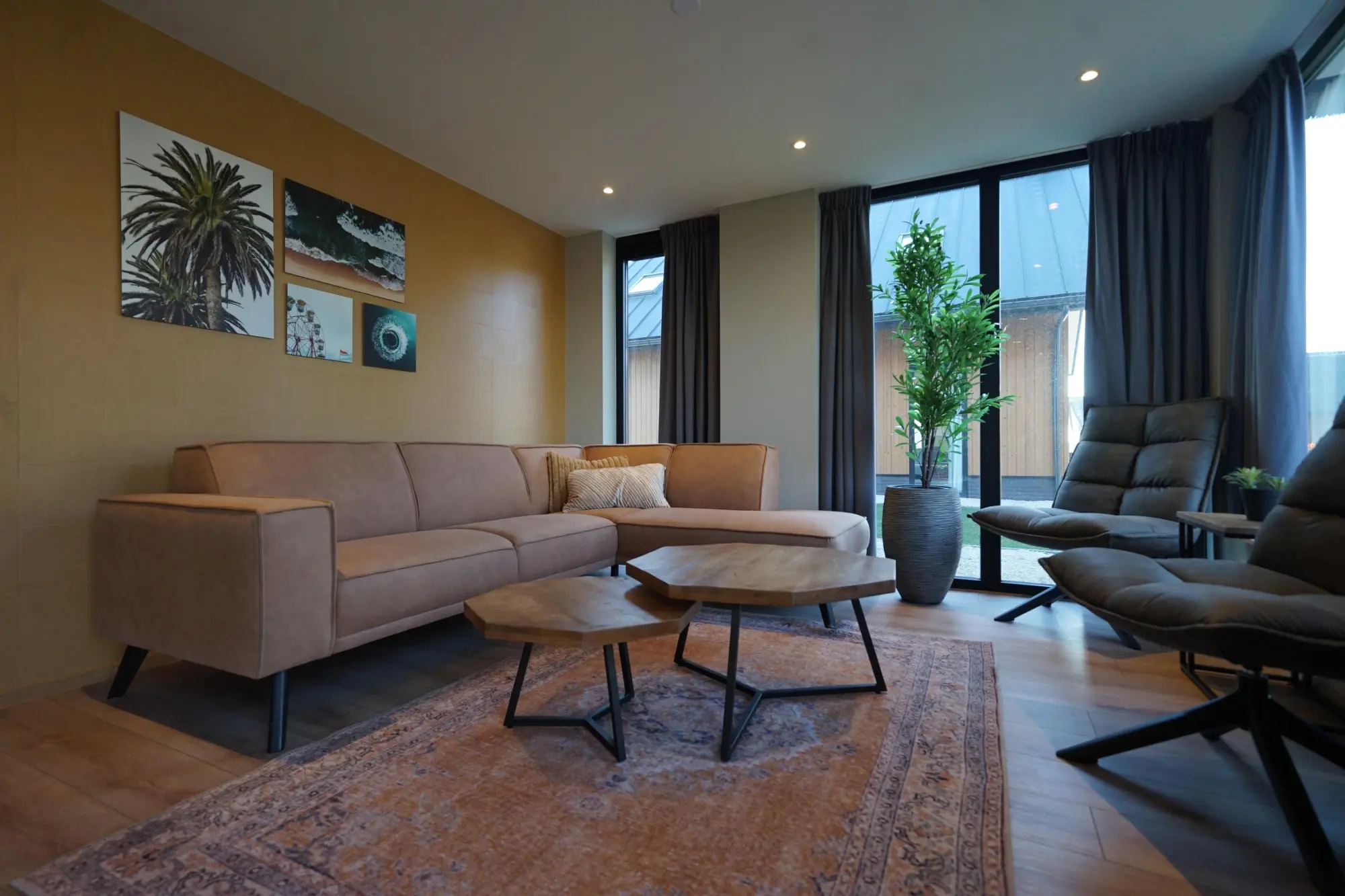 Meervilla type 4 10 - Rust, ruimte en veel uitzicht, kortom het eilandgevoel pur sang. Daar staat de Meervilla voor. De grote raampartijen met veel lichtinval versterken het vrijheidsgevoel dat een verblijf op een eiland van meerwaarde maakt. De schoorsteen en de robuuste zijgevel geven de vakantiewoning bovendien een robuust karakter, zodat eenieder binnen in de huiskamer ook ’s winters onbezorgd kan genieten terwijl het buiten stormt en slagregens het dak teisteren.
