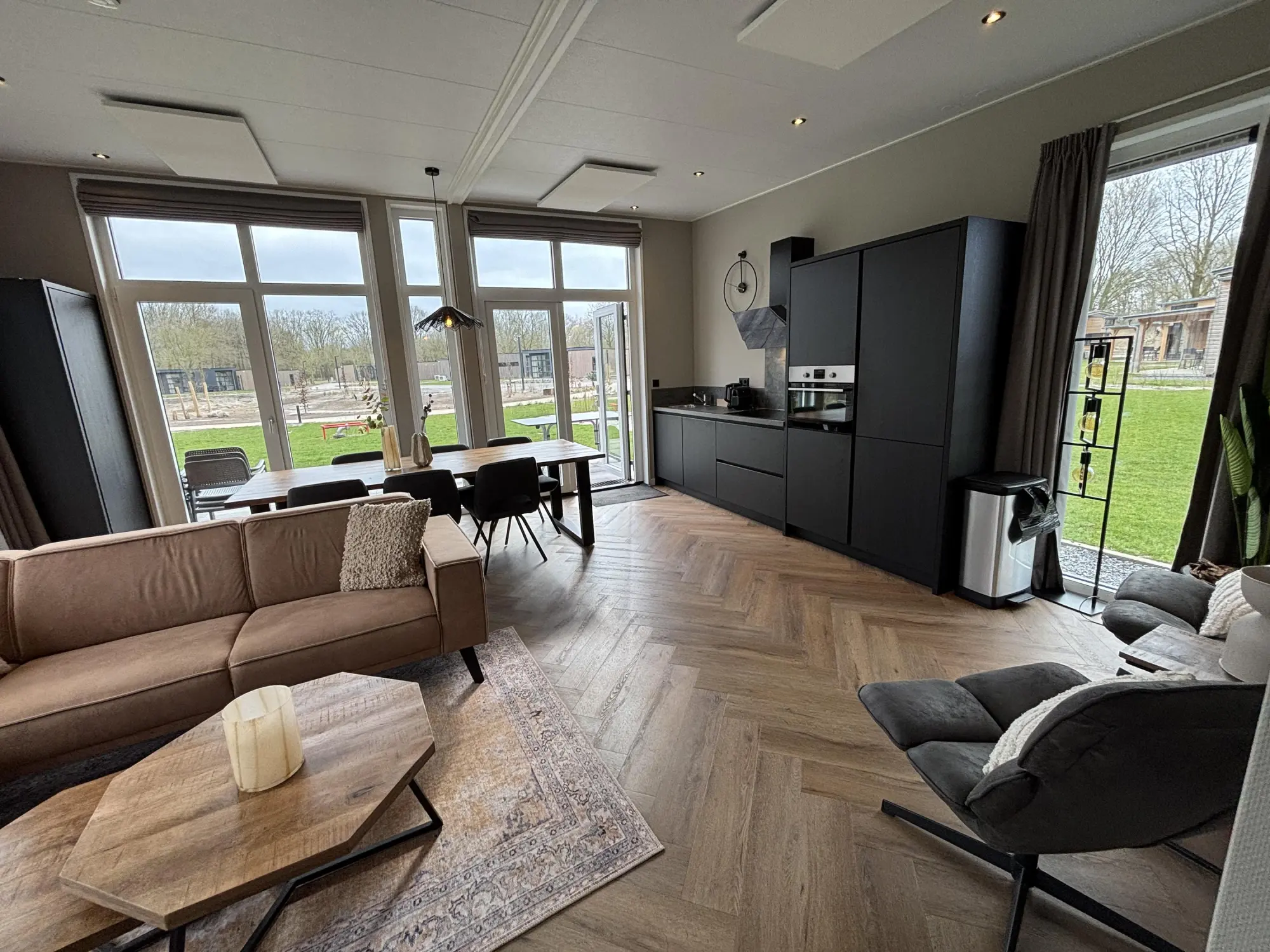 More Nature - Ruimte wordt in dit type met hoofdletters geschreven, want de woon- en zitkamer vormen met de keuken één zeer grote ruimte. Dit is een 6-persoons vakantiewoning die bovendien in alles in verbinding staat met de natuur, gesymboliseerd door het duurzame dak met EPDM dakbedekking. Daarnaast is ook de inrichting zoveel mogelijk met natuurlijke materialen. De grote lichtinval dankzij de grote raampartijen is een ander voorbeeld dat waar mogelijk de verbinding is gezocht met de natuur. Tegelijkertijd biedt dit type vakantiewoning veel comfort dankzij onder meer de riante badkamer met toilet, instapdouche en tweebakstafel. Ook de keuken is royaal qua uitrusting. Het slaapgenot komt tot uiting in de drie luxueuze slaapkamers, waarvan één met een tweepersoonsbed en twee ruimtes met twee losse bedden.